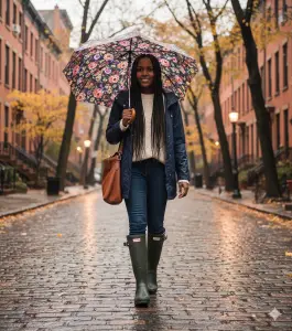 It’s always good to have a pair of rain boots on hand, as they keep your feet dry and can be worn with jeans or leggings. Some popular styles include Hunter boots, which come in a variety of colors and have a sleek design, and Sorel boots, which are insulated and perfect for colder fall days.
