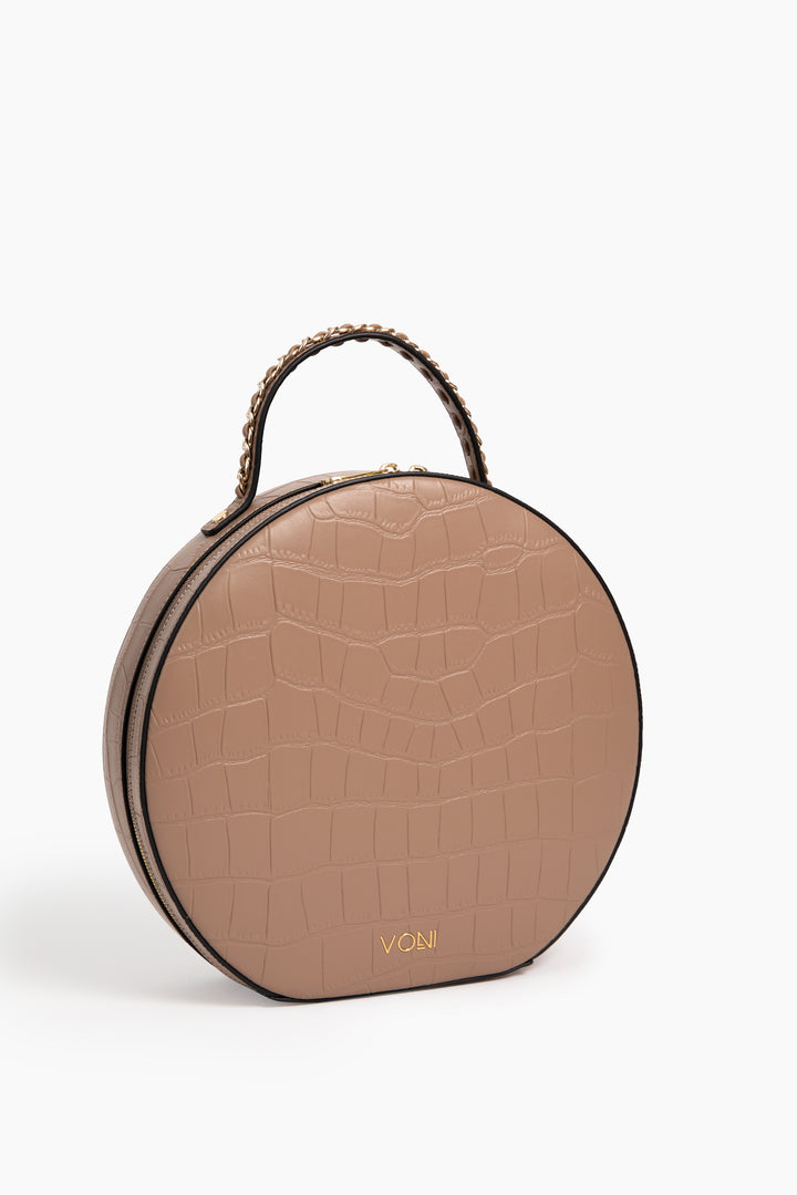 Circle bags are characterized by their unique round shape. These spacious purses usually include a top handle and additional straps, enabling them to function as both a crossbody and a backpack.